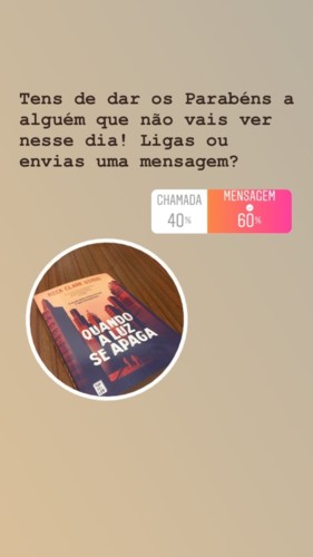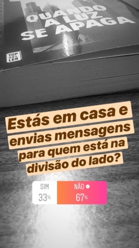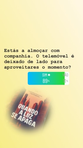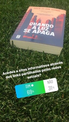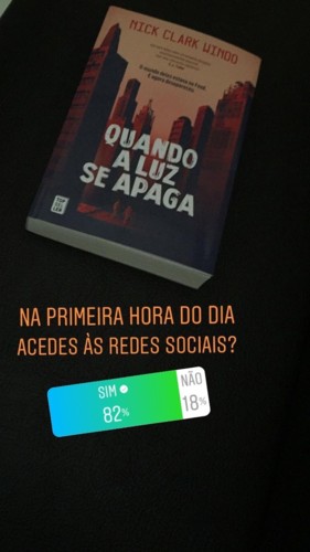 Ao iniciar a leitura de Quando a Luz se Apaga, uma obra da autoria de Nick Clark Windo, surgiu uma ideia que coloquei em prática. Nesta narrativa todos os humanos começam a ter um chip quando nascem que lhes dá toda a informação necessária para a vida, como um feed, onde toda a aprendizagem é feita de imediato e sem qualquer corte, mas um problema nas ligações retira a conexão total, ficando a sociedade num caos total. Com isto e porque ainda não andamos com chips incorporados mas estamos praticamente sempre ligados à internet, lembrei-me de lançar várias questões através das sondagens do Instagram sobre o modo como vamos vivendo com as redes sociais nos dias que correm.